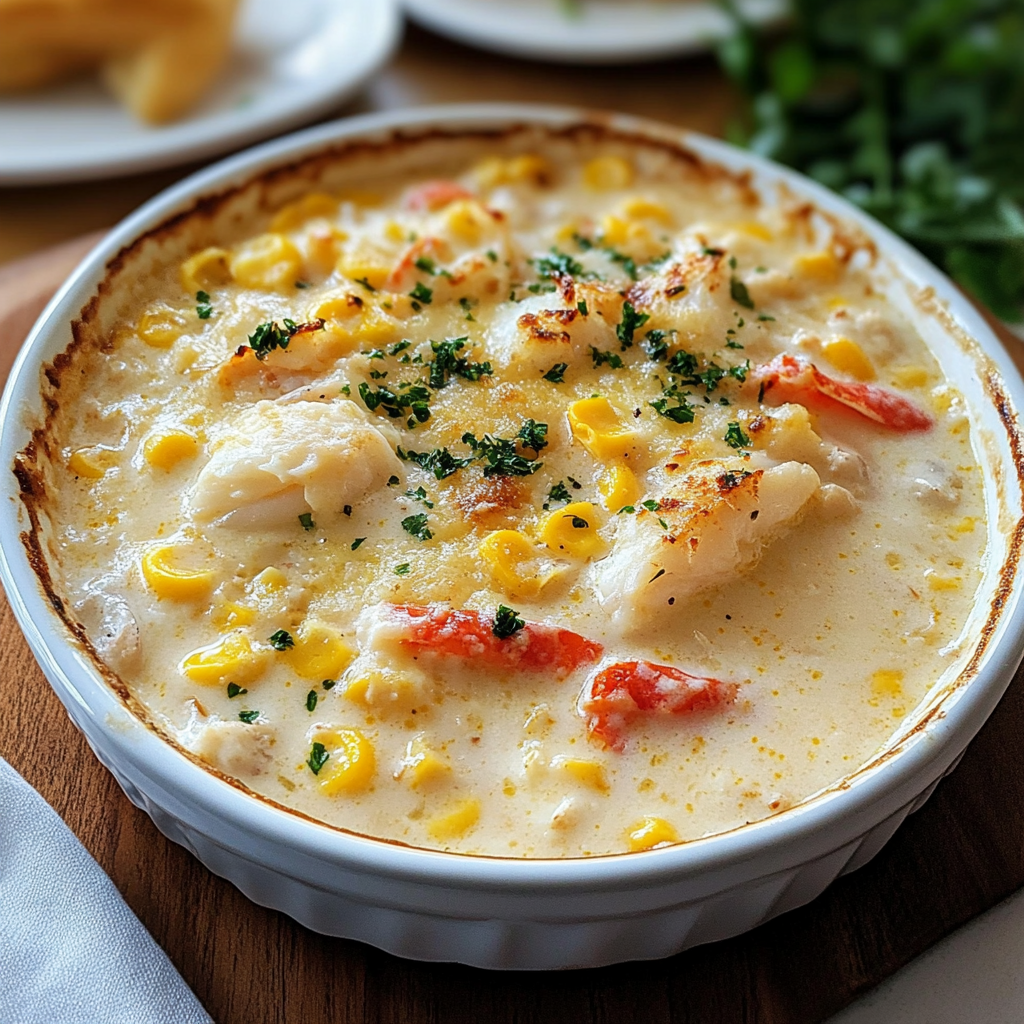 This isn’t your average soup. It’s a rich, layered blend of golden corn kernels, tender potatoes, aromatic herbs, and succulent crab, all simmered in a creamy broth that’s luxurious without being heavy. Each spoonful hits you with a sweet-salty balance, creamy depth, and just the right amount of warm spice.
