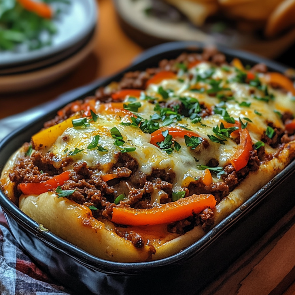 Second, it’s rich, cheesy, and packed with flavor. The combination of melty cheese, seasoned beef, and sweet bell peppers makes every bite a perfect balance of savory and slightly sweet flavors.
