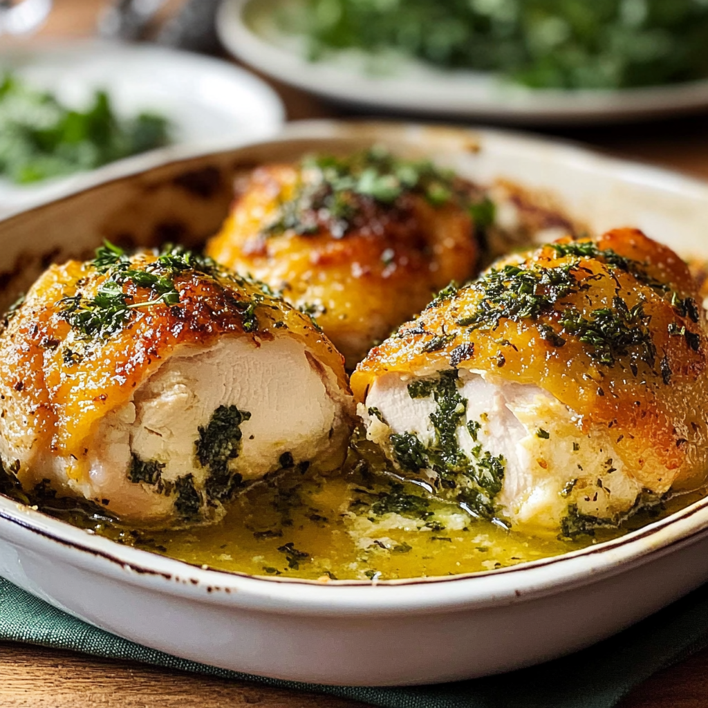 This chicken isn’t just a weeknight wonder—it’s a dinner party darling and a celebration staple. For a family holiday dinner, serve the chicken alongside creamy mashed potatoes, roasted carrots, and a fresh garden salad. The herb butter pairs beautifully with classic sides and gives your meal an upscale feel without the stress of a complicated menu.