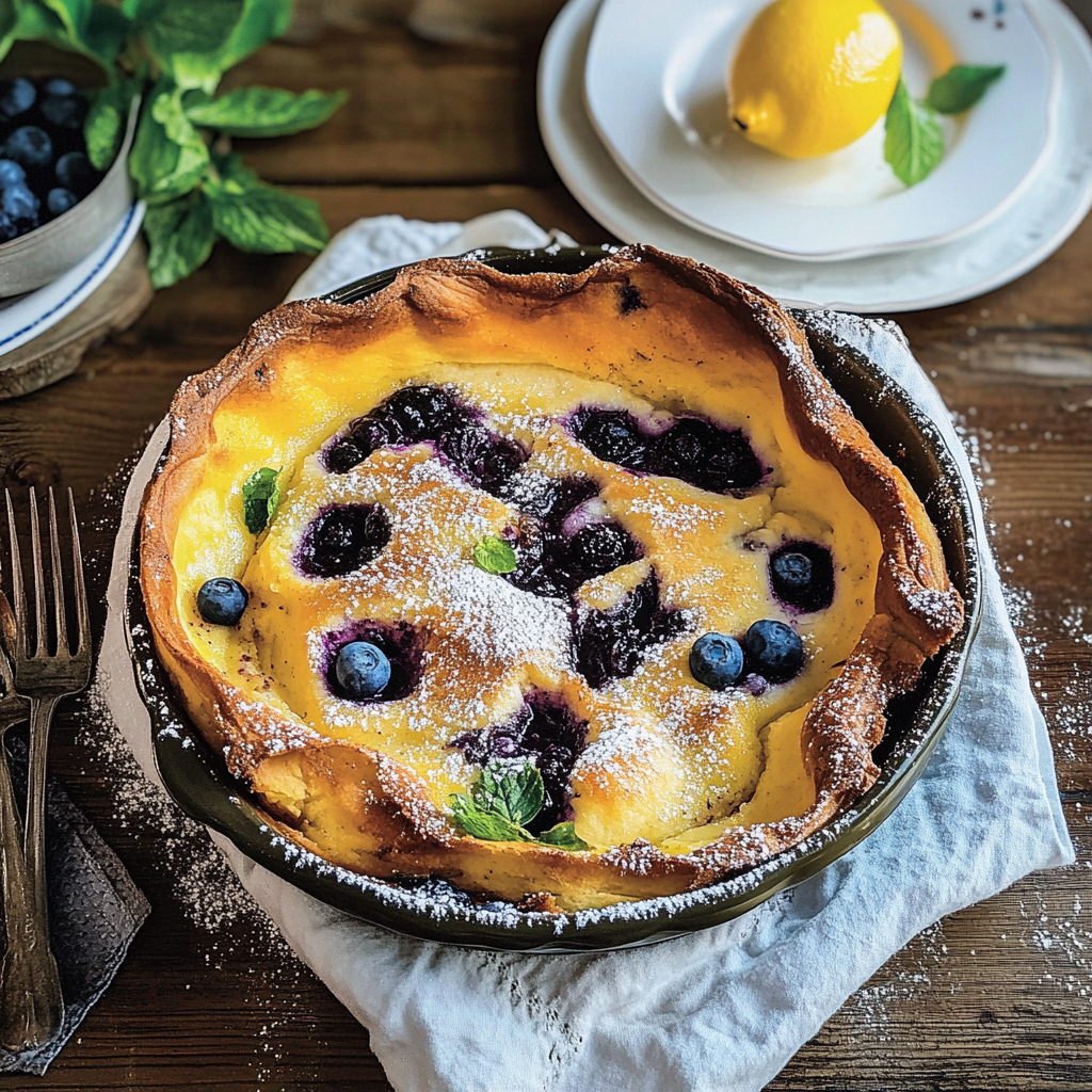 Dutch babies, sometimes called German pancakes, are magical in how they puff up dramatically while baking, only to settle into a beautiful crater-like shape once they cool slightly. That crater is perfect for catching pools of melted butter, maple syrup, or a dusting of powdered sugar. But what makes this version extra special? The refreshing tang of lemon zest and the natural sweetness of fresh blueberries. Every bite delivers a balance of tart and sweet, with a buttery richness that makes it truly irresistible.