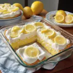 This cake is light, refreshing, and perfect for spring and summer occasions. Whether you’re making it for a backyard barbecue, Easter celebration, or just because you love lemon desserts, this easy-to-make yet impressive cake is sure to be a crowd-pleaser. With a soft cake base, zesty lemon filling, and a creamy whipped topping, this dessert is the ultimate combination of sweet and tangy flavors.