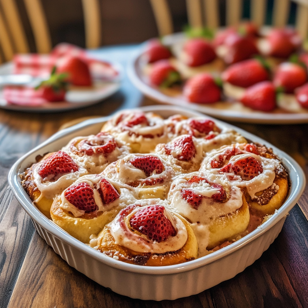 Hosting brunch? Bake the rolls in a cast-iron skillet or round cake pan for that rustic, café-style presentation. Once baked, drizzle the glaze generously and top with fresh sliced strawberries and a dusting of powdered sugar for a showstopping finish.